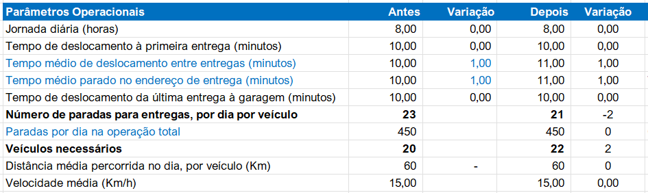 - A Economia: Para realizar as mesmas 450 entregas diárias, você precisaria de apenas 18 veículos em vez de 20. Ao desmobilizar dois VUCs, você elimina integralmente seus custos de manutenção, seguros, impostos e salários, protegendo o caixa da empresa contra a oscilação de demanda.