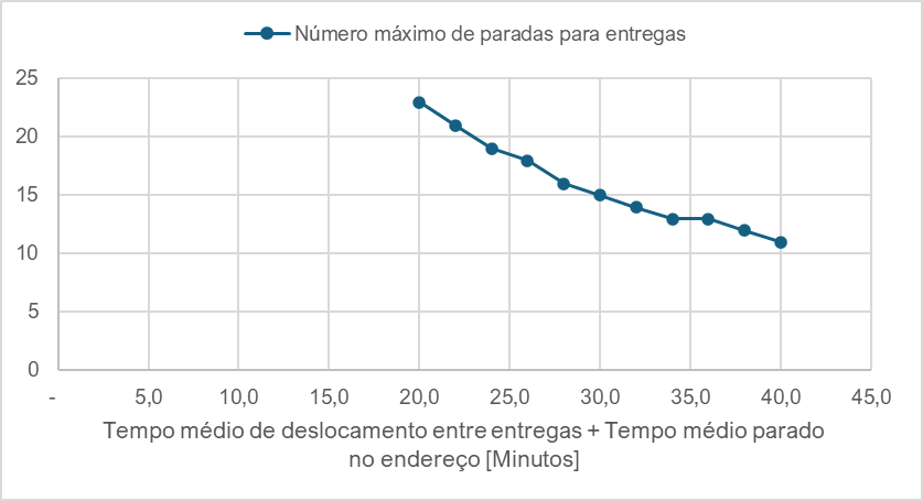 Na operação urbana, muitos negligenciam uma variação de apenas 1 minuto no tempo médio de deslocamento entre paradas e no tempo médio parado no endereço. No entanto, a relação entre estes tempos e o número diário máximo de paradas é implacável:
